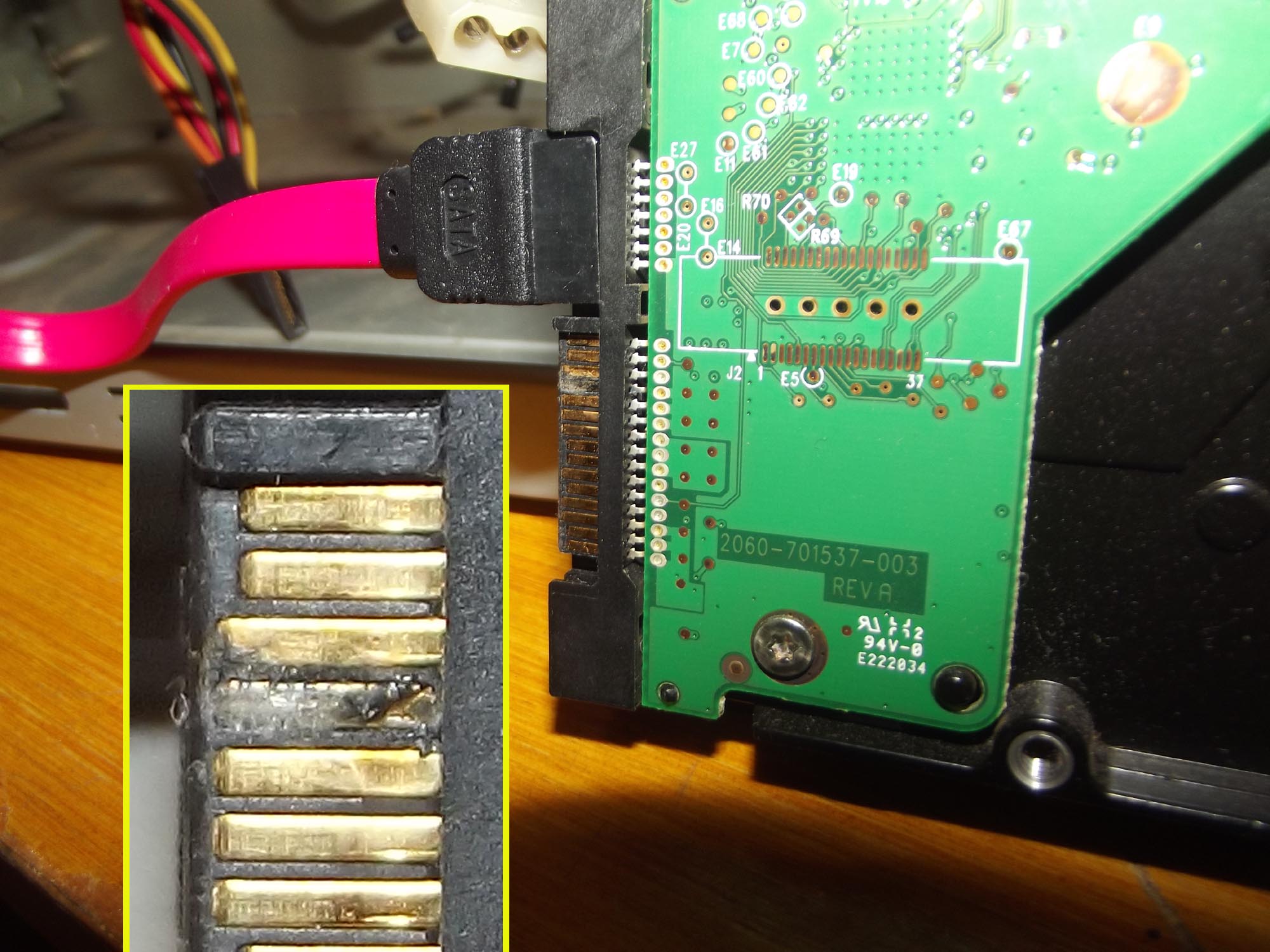 ![]() Vadný disk? čím to je? Ahá... napájecí konektor je vypálený !!! |